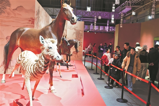 2月13日,“马舞新春——全球生肖文化联展”在国家自然博物馆举行。本次展览以“马”为主题,深入挖掘这一生灵从自然演化到文明象征的壮阔史诗。