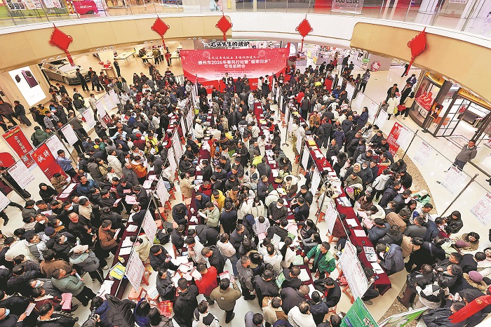 当日是农历正月初六,该市举办2026年春风行动暨“榴枣归乡”专场招聘会,吸引众多求职者前来应聘,助力劳动者求职就业。