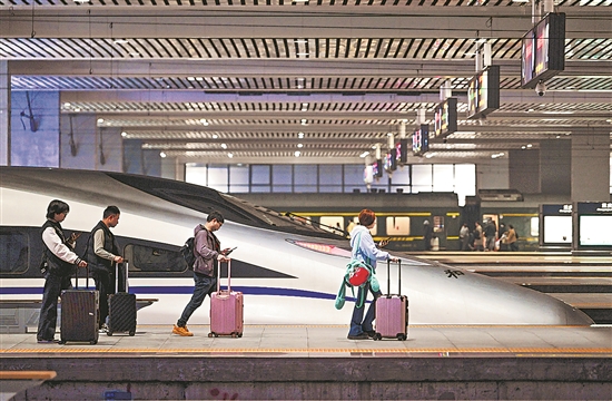 图为2月23日,旅客在重庆北站站台乘车。新华社记者 唐奕 摄