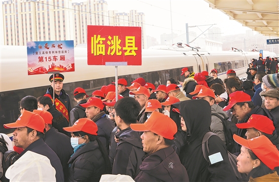 2月25日,来自甘肃省定西市各区县的500余名务工人员,在定西北站乘坐G2096次列车前往山东青岛。这是甘肃省2026年春节过后开行的首趟“点对点”务工返岗专列,也是中国铁路兰州局集团有限公司连续7年在定西地区组织开行“点对点”务工返岗专列。