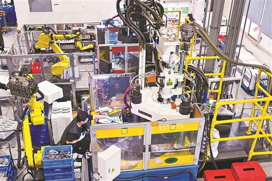2月24日,工人在爱柯迪富乐精密科技(江苏)股份有限公司生产线作业。
