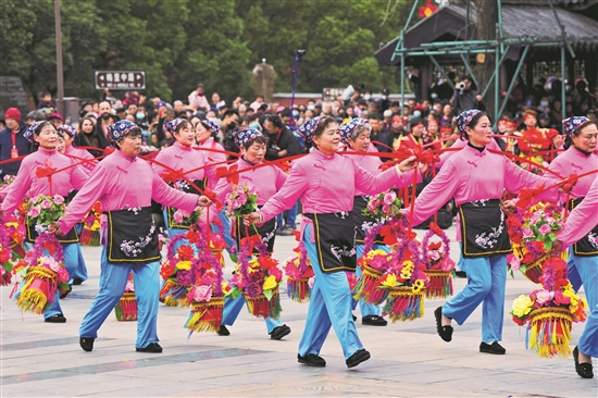 2月25日,演员在江苏省无锡市新吴区梅村泰伯庙会进行表演。
