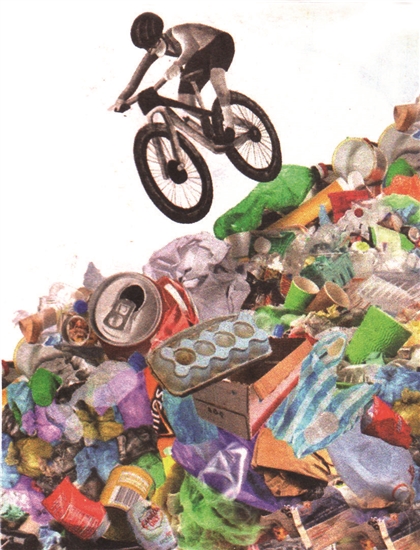 当今的生活正被垃圾所困扰着,它不仅污染环境,滋生病毒虫害,还影响交通畅行,你看,这位骑车人闪躲腾挪,酷似练杂技。