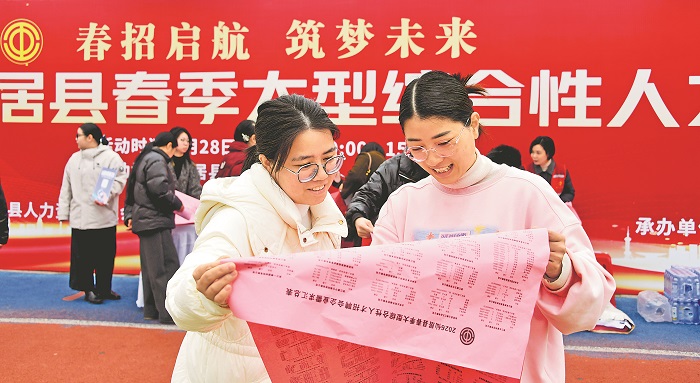 2月28日,求职者在浙江省台州市仙居县春季大型综合性人才招聘会上了解就业信息。当日,仙居县总工会、县人社局联合在该县红旗广场举行春季大型综合性人才招聘会,当地160多家优质企业提供3500多个职位。本报通讯员 王华斌 摄