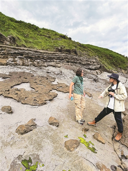 一项由西班牙与中国学者合作的研究记录了在西班牙发现的距今约1.5亿年的两条蜥蜴行迹,专家认为这是欧洲首次记录到侏罗纪时期的蜥蜴行迹。该成果近日在线发表于国际古生物学期刊《遗迹学》。图为中外学者在西班牙北部阿斯图里亚斯自治区考察化石遗迹。