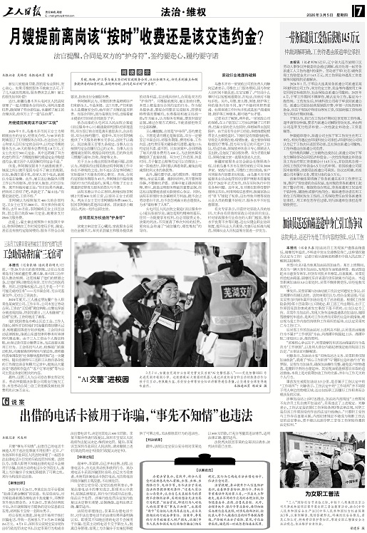 该案主审法官王心曦说,家政服务合同往往金额不大,却关系到雇主和服务提供者的切身利益,在出现纠纷时,合同是双方的“护身符”。月嫂提前离岗、雇主拒绝付费,本质上都是违反合同约定的行为。作为服务提供者,要按合同要求完成服务,即便有特殊情况要解约,也得提前和雇主协商一致;作为雇主,认为服务有瑕疵,要及时固定证据,通过合理方式维权,不能直接拒绝支付全部报酬。