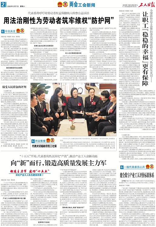 “职工过日子,就业是根本,这是民生底线”“一线职工想成长,技能就是硬底气”“劳动者的权益,必须实打实守护好”……在今天全国政协总工会界别小组会议上,来自工会系统、企业一线的委员们,围绕政府工作报告,就职工就业、技能成长、权益保障等议题坦诚交流,建言献策。