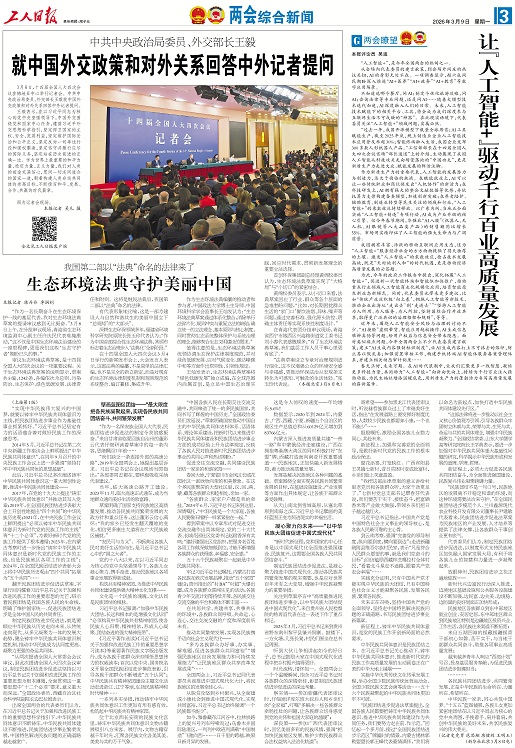 “法典草案设立专章对治理规则进行细化,这不仅增强公众的环境安全感与幸福感,更推动环保法治从宏观条文转化为可感知、可触及的生活体验。”张玉珍代表说。(本报北京3月8日电)
