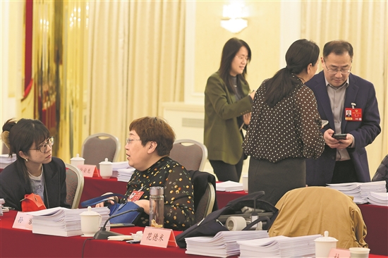3月8日,政协医药卫生界小组讨论结束后,委员们和记者在一起交流。今年全国两会上,建设健康中国的话题仍是医药卫生界别聚焦的话题之一。