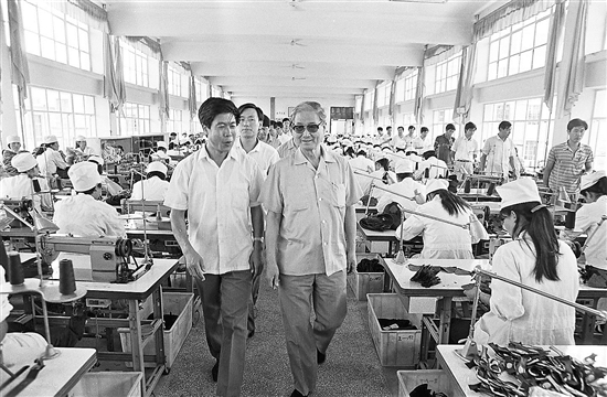 1990年8月14日,宋平同志(右)在山东省威海市文登区考察。新华社发