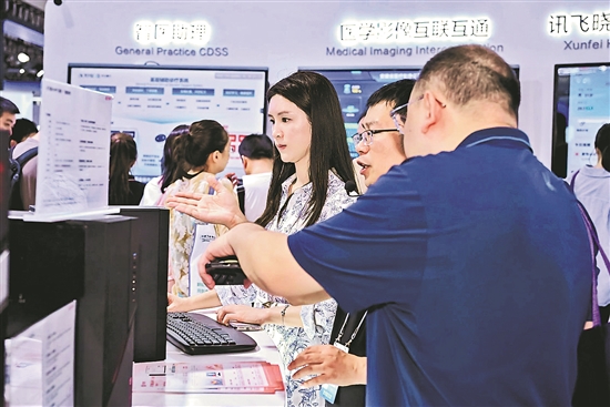 ③观众正参观2025年世界人工智能大会期间展出的讯飞晓医展品。科大讯飞集团供图