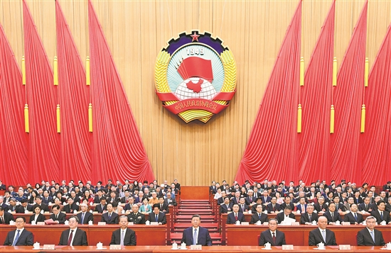 全国政协主席王沪宁主持闭幕会并讲话。新华社记者 黄敬文 摄