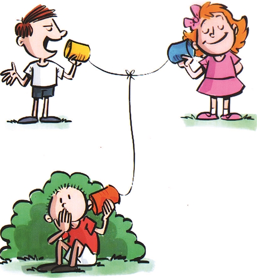 两个娃娃“打电话”可谓司空见惯,谁想到旁边竟有孩童窃听人家“秘密”,这可算不得什么童趣盎然,须有人来规劝一二了……