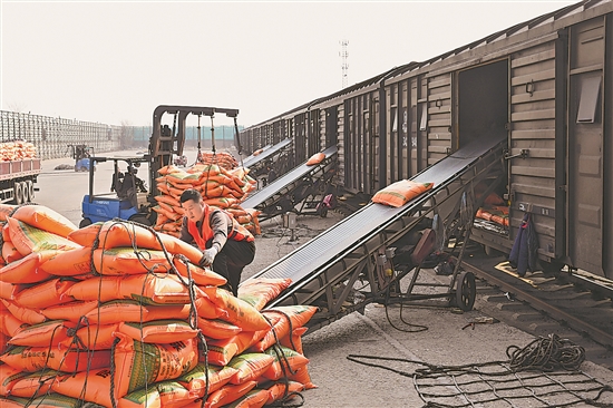3月13日,山西省运城市稷山县稷山站化肥装车作业繁忙有序,满载近3000吨化肥的列车启程发往云贵川等地。日前,国铁太原局推广“点对点”直达运输模式,联合当地化肥生产企业打造“春耕保供专列”,为春耕生产提供急需的农资保障。本报通讯员 王子楠 摄