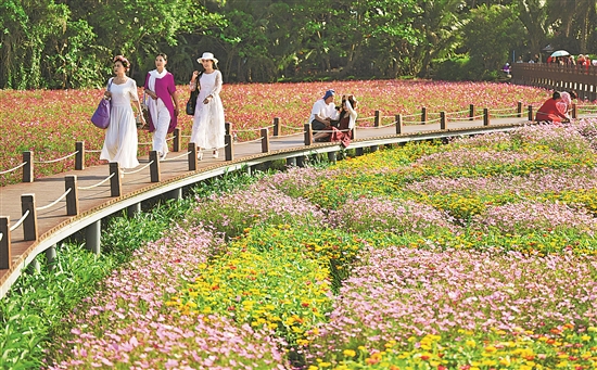 博鳌亚洲论坛2026年年会临近,琼海市博鳌镇南强村数十亩主题花海迎来盛放期,吸引游客前来踏青赏花。