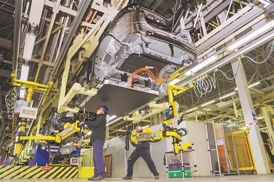 3月17日,在位于南京市江宁开发区的长安马自达汽车有限公司总装车间内,工人在生产线上进行生产作业。