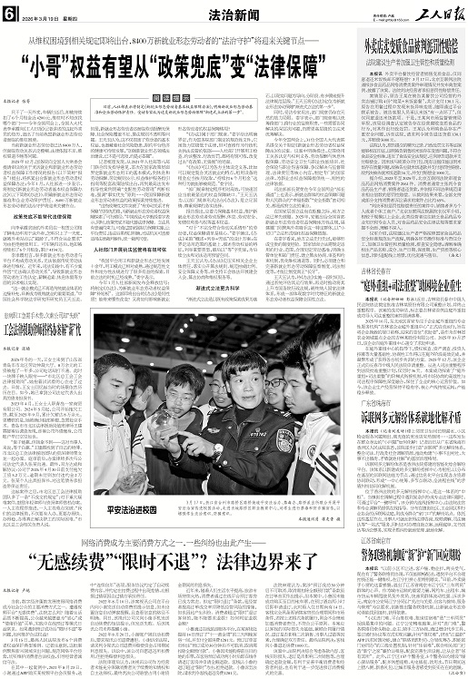 司法部部长贺荣在今年全国两会“部长通道”上也表示,新就业群体的权益保障问题和人民群众的“幸福指数”“安全指数”密切相关,都是政府立法的重点。