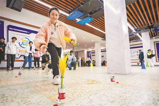 3月19日,学生在湖南农业大学参加农趣运动游戏——抢种抢收。