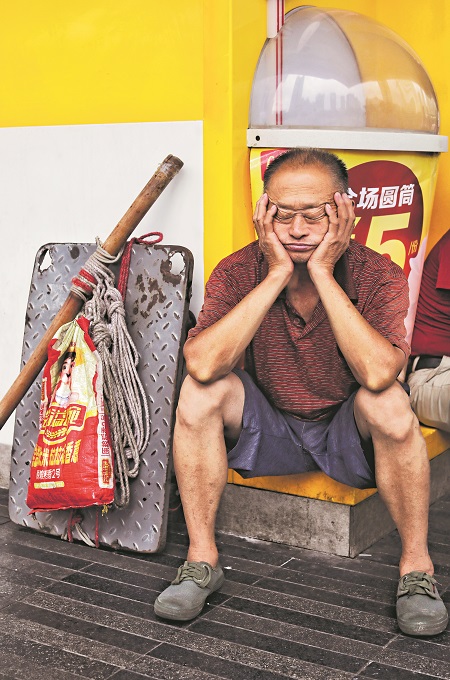2025年7月20日,重庆,一位在路边闭目休息的“棒棒”。“棒棒”是指凭借一根竹棒和绳索,在重庆从事人力搬运工作的劳动者。他们大多来自周边农村,凭着一身力气在重庆的大街小巷揽活,通过自己的劳动挣一份辛苦钱。本报记者 杨登峰 摄
