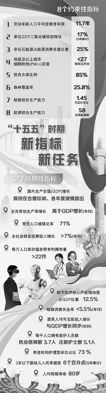 “十五五”规划纲要勾勒出未来五年中国高质量发展的蓝图。这份“任务书”详细列举了我国“十五五”时期经济社会发展的主要指标,并在提升收入、促进就业等方面做出了一系列具体规划。