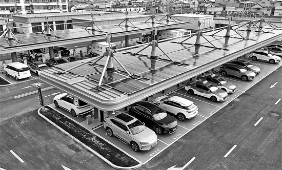 3月22日,江苏省连云港市海州区交控绿能超充站,新能源汽车在充电。