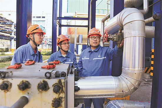 近日,齐鲁石化第二化肥厂把班组“微课堂”搬到装置现场,设置“双向主讲”环节,老师傅分享实操经验、应急诀窍,青工讲解理论原理、新技术,促进双方共同成长,夯实岗位责任。李建强 摄