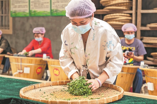 3月25日,广西梧州市苍梧县沁怡六堡茶业专业合作社内热气蒸腾,制茶师正专注地手工炒制明前茶。眼下当地迎来采茶制茶高峰期,制茶师对鲜叶进行杀青、揉捻、摊凉等传统工艺,制成香气扑鼻的成品茶,抢“鲜”供应市场。