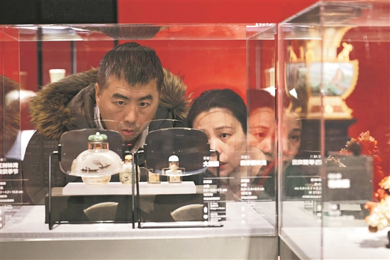 3月26日,北京中国美术馆内,“大匠之道——中国工艺美术大师邀请展”正持续展出,观众驻足欣赏精美展品。