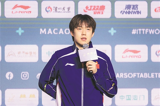 中国选手王楚钦在抽签仪式上。新华社发