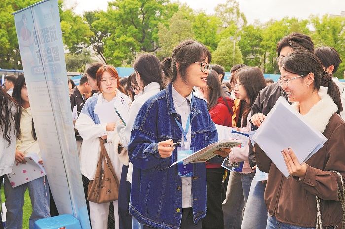3月31日,在西南大学举行的重庆市2026届普通高校毕业生春季促就业攻坚行动暨青年留渝来渝就业创业对接服务活动现场,应届毕业生在了解用工信息。