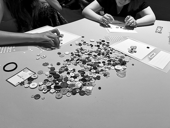 在“生命终章”工作坊的纽扣游戏中,参与者选择纽扣来代表临终前希望陪在自己身边的人。