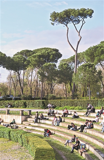 意大利首都罗马近日气温回暖,春意渐浓,人们纷纷走出家门,乐享周末。图为近日,人们在意大利首都罗马的博尔盖塞公园休闲。