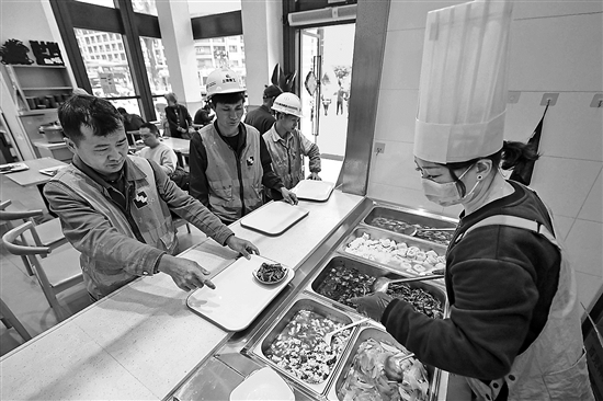 近期,该食堂推出10元左右就能吃饱吃好的“工友套餐”,经济实惠且营养健康,吸引不少工友、快递员和网约车司机前来就餐。本报通讯员 金鹏 摄