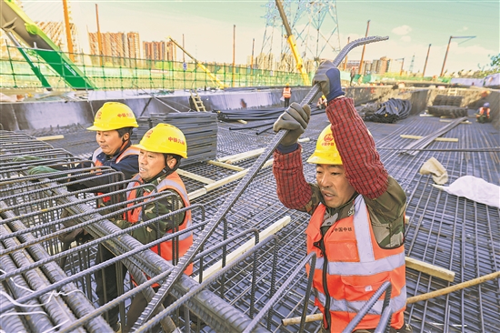 4月6日,北京市安立路快速化改造工程现场,来自中铁六局的建筑工人正在加紧施工。当日是清明假期最后一天,工人们坚守岗位,抓进度、保节点,全力保障工程按时推进。本报记者 王伟伟 摄