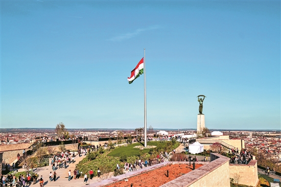 近日,匈牙利首都布达佩斯的著名地标齐代德拉城堡经过修缮后重新对外开放,吸引众多游人前来参观。焕然一新的城堡设有公园、观景台和历史展览馆,其门前的自由女神像也同步完成了全面修复。图为近日,游人在匈牙利布达佩斯参观重新开放的齐代德拉城堡。 新华社发(鲍洛格·达维德 摄)