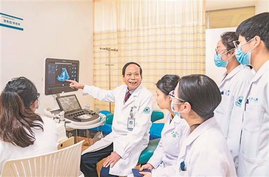 4月8日,浙江省金华市人民医院诊室内,全国劳动模范刘志聪正在给基层医护人员进行指导。他结合自身丰富经验,围绕诊疗规范、服务细节、临床实操等内容与大家深入交流。