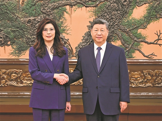 4月10日上午,中共中央总书记习近平在北京会见郑丽文主席率领的中国国民党访问团。新华社记者 谢环驰 摄