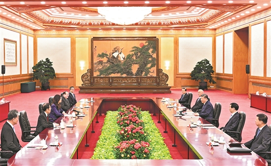 4月10日上午,中共中央总书记习近平在北京会见郑丽文主席率领的中国国民党访问团。新华社记者 李响 摄