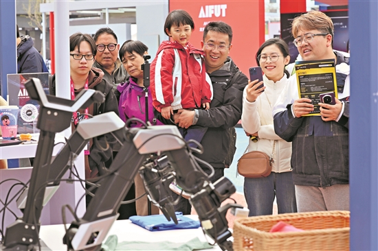 4月8日,AI FUTURE北京亦庄AI未来大会在北京亦庄・北京智慧电竞赛事中心启幕。活动现场,不少参观者驻足观看AI叠衣服等智能演示,感受人工智能的便捷与趣味。