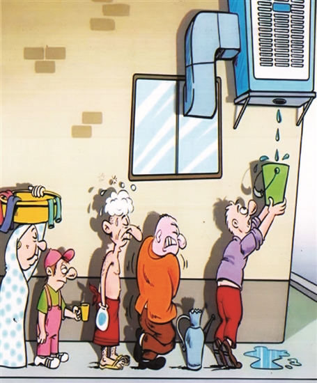 骄阳似火的夏日,穷人住在缺水少电的居室内度日如年。人们忽然发现富人家空调机排出的水似乎可以用来洗漱,真是“冰火两重天”!