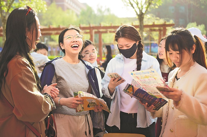 4月11日,河北沧州职业技术学院2026年春季校园双选会举行,求职学生在了解招聘信息。双选会吸引了京津冀鲁等地区用人单位参加,提供就业岗位1万余个,达成初步就业意向2200余个,覆盖了教育、文化传媒、信息技术等行业。本报通讯员 傅新春 摄
