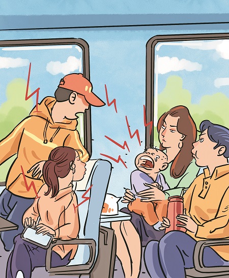 公共场所孩童喧闹是常见的闹心事,一些网友点赞上述大学生,是因为其吼出了自己的心声和期待,另一些网友认为此举不妥,则道出了当下公共场所维持安静秩序所面临的现实困境。孩童因对外界环境不适而哭闹叫喊在所难免,而乘客希望周遭环境舒适也是合理诉求。我们关注此类个案,是希望能凝聚起更多的公共空间文明共识,探索更多可行的柔性治理措施。比如,有的家长提前准备益智游戏让孩子保持专注和安静,有的乘务员通过趣味试卷“拿捏”小朋友,有的乘客则会在家长手忙脚乱时搭把手、帮着逗娃……说到底, 解决这一问题,不能只靠个别人去吼,而需身处其中的每个人在包容理解的基础上出一份力。