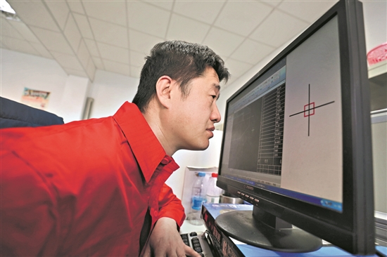 在研究所,王斌的工位总是亮着灯。画图时,他的整张脸几乎贴在电脑屏幕上,19寸液晶屏被他分成两部分——左侧是机械制图界面,右侧将图纸局部放大了8倍。如果需要看文字、表格或多媒体,他就打开语音朗读软件,“听”完所有内容。