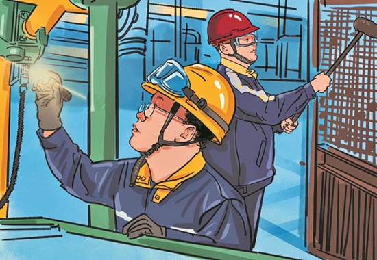后来,乔志文瞄准原料磨中间泵因碎球频繁卡泵的问题再次攻关,将破题关键锁定在碎球进入泵体的通道。他带领技术人员钻槽罐、测数据,反复推演,并利用1号棒磨更换衬板的时机,将一个由他主导设计、线外预制好的“挡球笼”精准吊装入中间槽内,通过密切关注运行数据,不断优化挡球笼的安装位置、清理周期。经过几个月的实践摸索,“5天清理1次”的最佳方案被固化下来,单台磨运转率提高15%,单是每月节省的检修、备件费用就将近3万元。