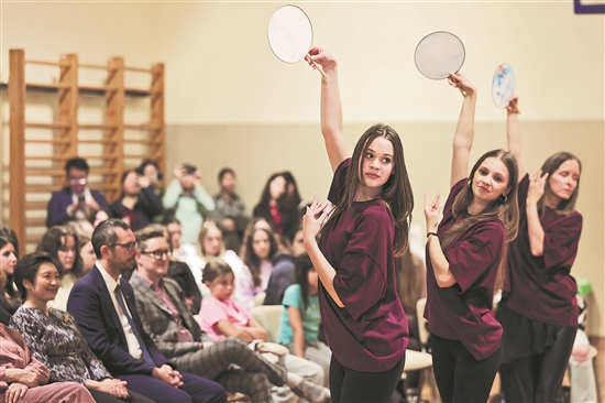当地时间4月20日,斯洛文尼亚“国际中文日”活动在采列中心高中举办。活动包括文艺演出、中文课堂等,吸引超过百余人参加。图为当日斯洛文尼亚采列中心高中学生进行文艺表演。新华社发 (泽利科·斯特凡尼奇 摄)