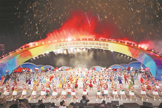 本报三亚4月22日电 (记者莫荞菲)今晚,第六届亚洲沙滩运动会(以下简称三亚亚沙会)在海南省三亚市亚沙公园拉开帷幕。本次三亚亚沙会是海南自由贸易港全岛封关后举办的首个国际综合性体育赛事,也是海南建省以来首个洲际综合性运动会。来自亚奥理事会45个国家和地区的近1800名运动员齐聚天涯海角,展现沙滩运动的独特魅力。