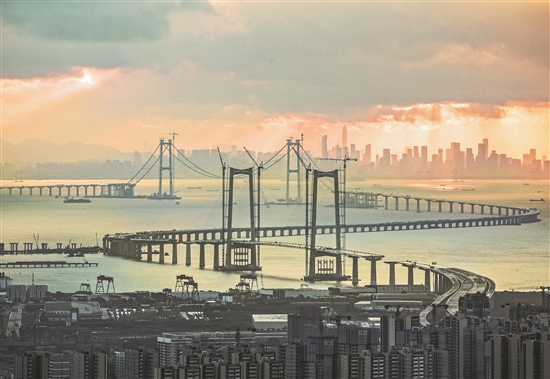 沐浴在夕阳中的深中通道。李晓群 摄