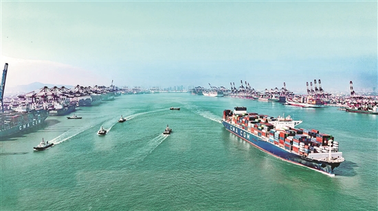 山东港口青岛港前湾港区巨轮破浪。本报记者 张嫱 摄
