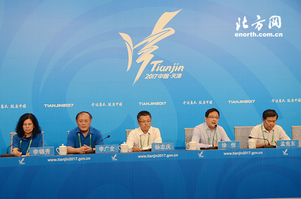 天津北方网讯:2017年8月22日,第十三届全运会第一场新闻发布会在主新闻中心新闻发布厅召开。天津市委外宣办主任、组委会新闻宣传部副部长、主新闻中心主任徐恒,组委会广播电视部、媒体村、新闻宣传部媒体运行处主要负责同志出席本次发布会。