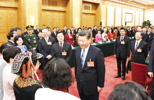 在“三八”国际妇女节到来之际,习近平代表党中央、国务院,向参加全国两会的女代表、女委员、女工作人员,向全国各族各界妇女同胞,致以节日的祝贺和诚挚的祝福。